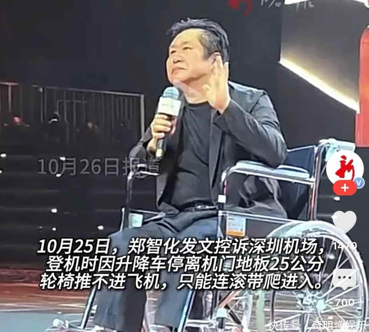 10月25号那天,郑智化在微博上说,他在深圳机场登机的时候,被人连滚带爬抬进机舱,他没骂人,但话说得挺重,说工作人员就在边上看着,没人伸手帮一把,连个轮椅都找不到,这条微博一发,网上就吵开了,好多人说机场太不像话,连个轮椅都安排不好。